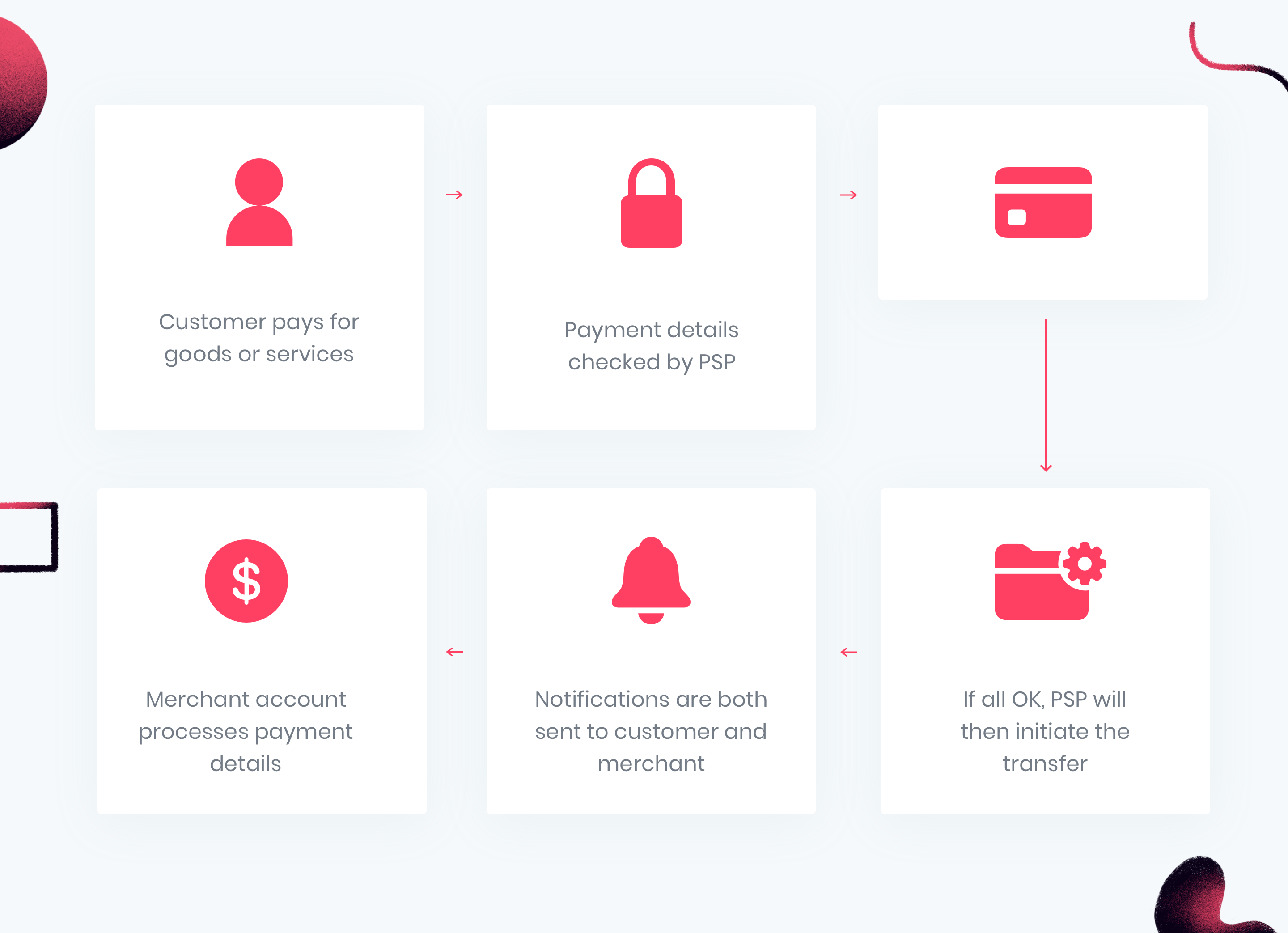 If something goes wrong, like adding a wrong card number or in the case of insufficient funds on the card, the PSP will end the process and notify a customer and the merchant of the failed payment.