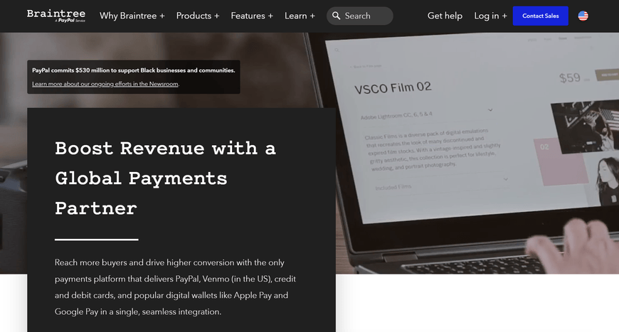Braintree is a big competitor to Stripe run by PayPal. What makes it unique is that it is the only platform that offers PayPal integration, Venmo, credit and debit cards, Apple Pay, and Google Pay. The service is used by many brands including Uber, Dropbox, Yelp, and Github.